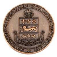 Sur l’avers, au centre, paraissent les armoiries du Québec, alors que le nom et le rang du lieutenant-gouverneur en fonction se trouvent sur le pourtour.