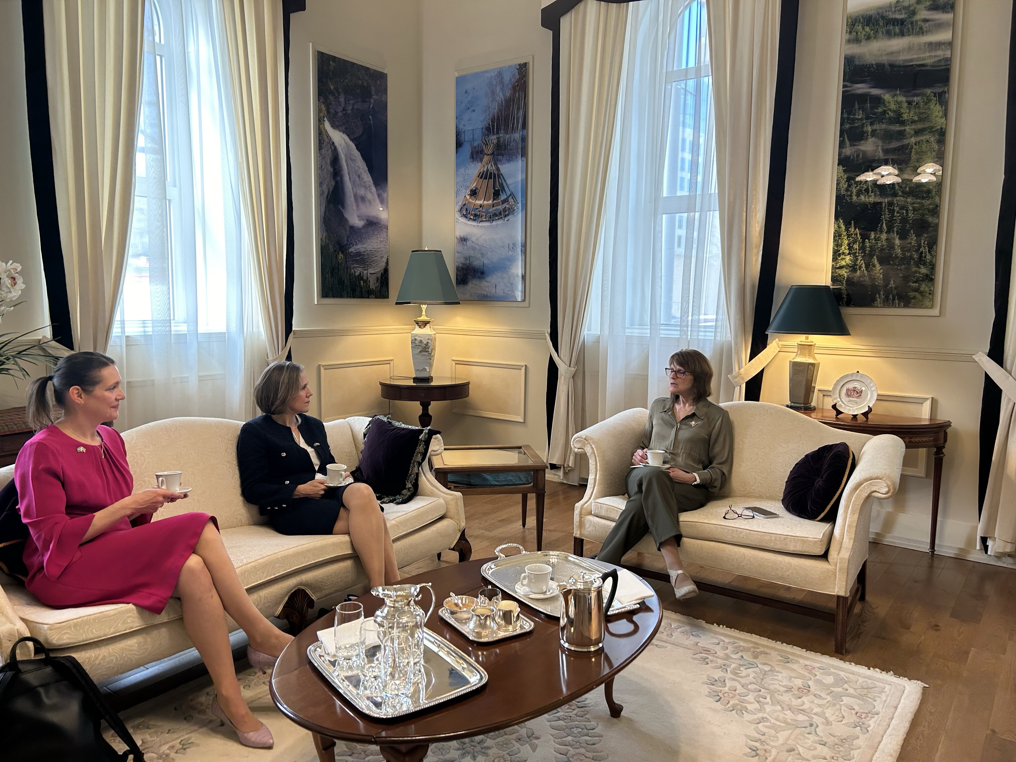 This morning, the Lieutenant Governor had the pleasure of receiving Her Excellency Madame Susannah Goshko, High Commissioner of the United Kingdom to Canada, accompanied by her counterpart, Madame Chloe Adams, Consul General in Montreal and dean of the consular corps.
