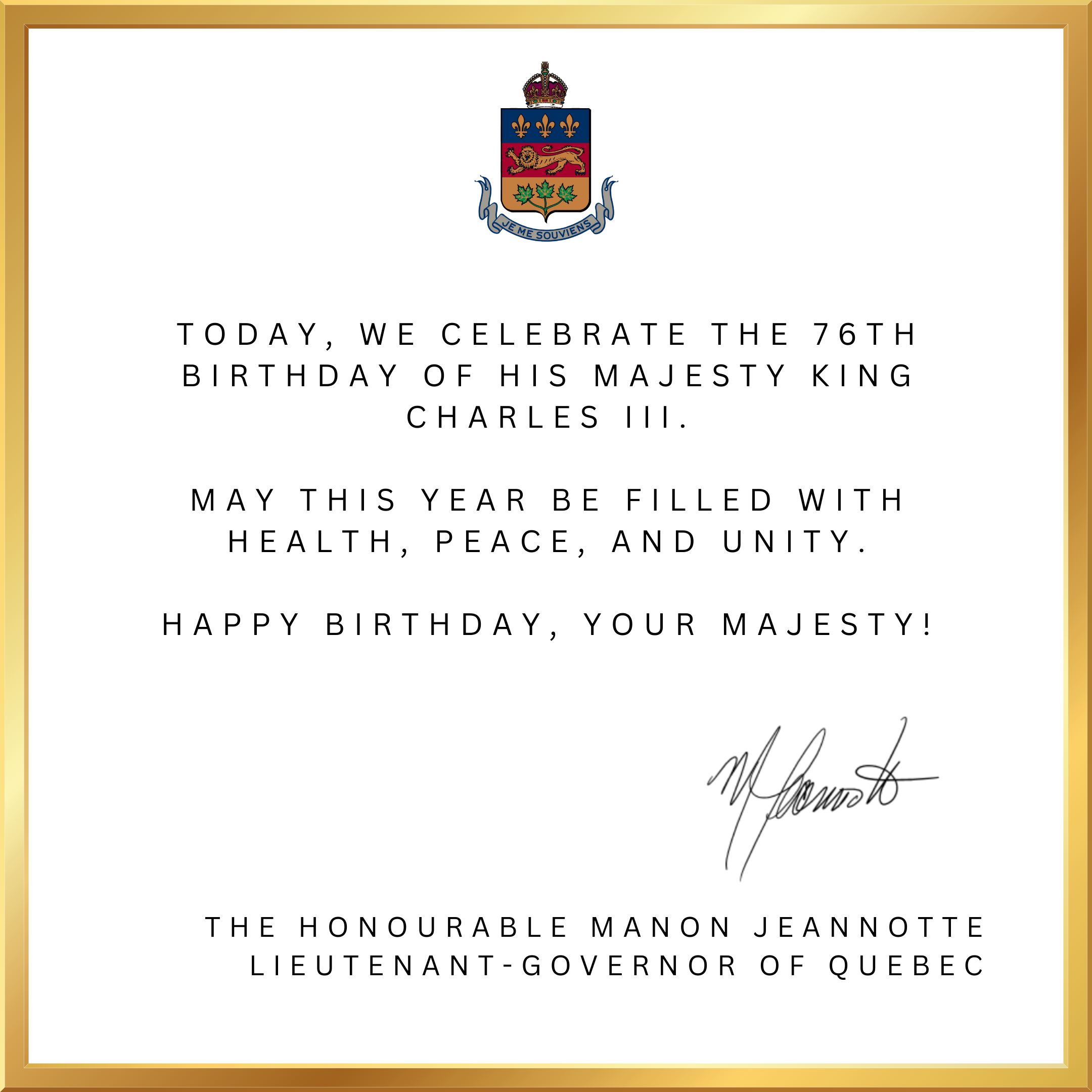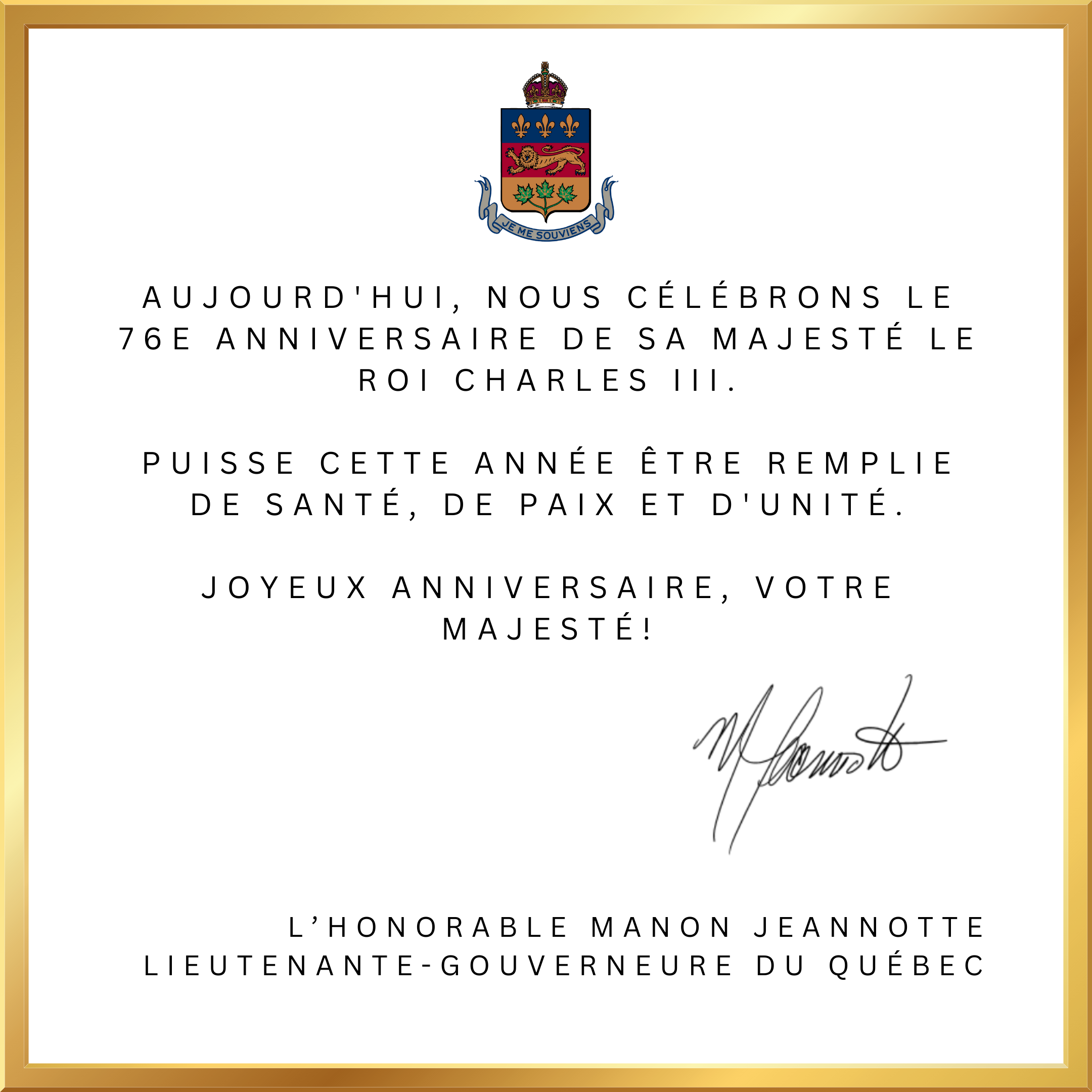 Aujourd'hui, nous célébrons le 76e anniversaire de Sa Majesté le roi Charles III.