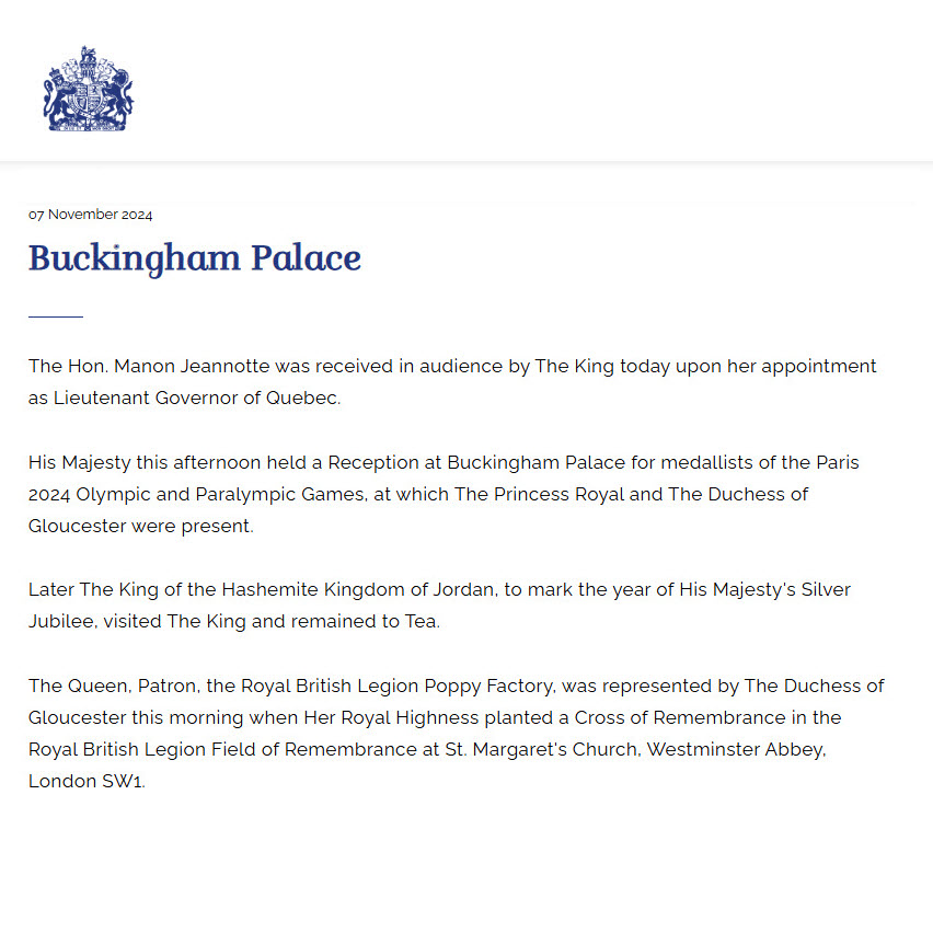 Le 7 novembre, j’ai eu l’immense privilège de rencontrer Sa Majesté le roi Charles III à #BuckinghamPalace. Ce fut un moment de partage et d’échange autour de mon parcours, de nos valeurs communes concernant la protection de l’environnement ainsi que de la réconciliation, dont le traité de paix et d’amitié entre la Couronne britannique et les Mi'gma, qui marquera l’an prochain son 300e anniversaire.
