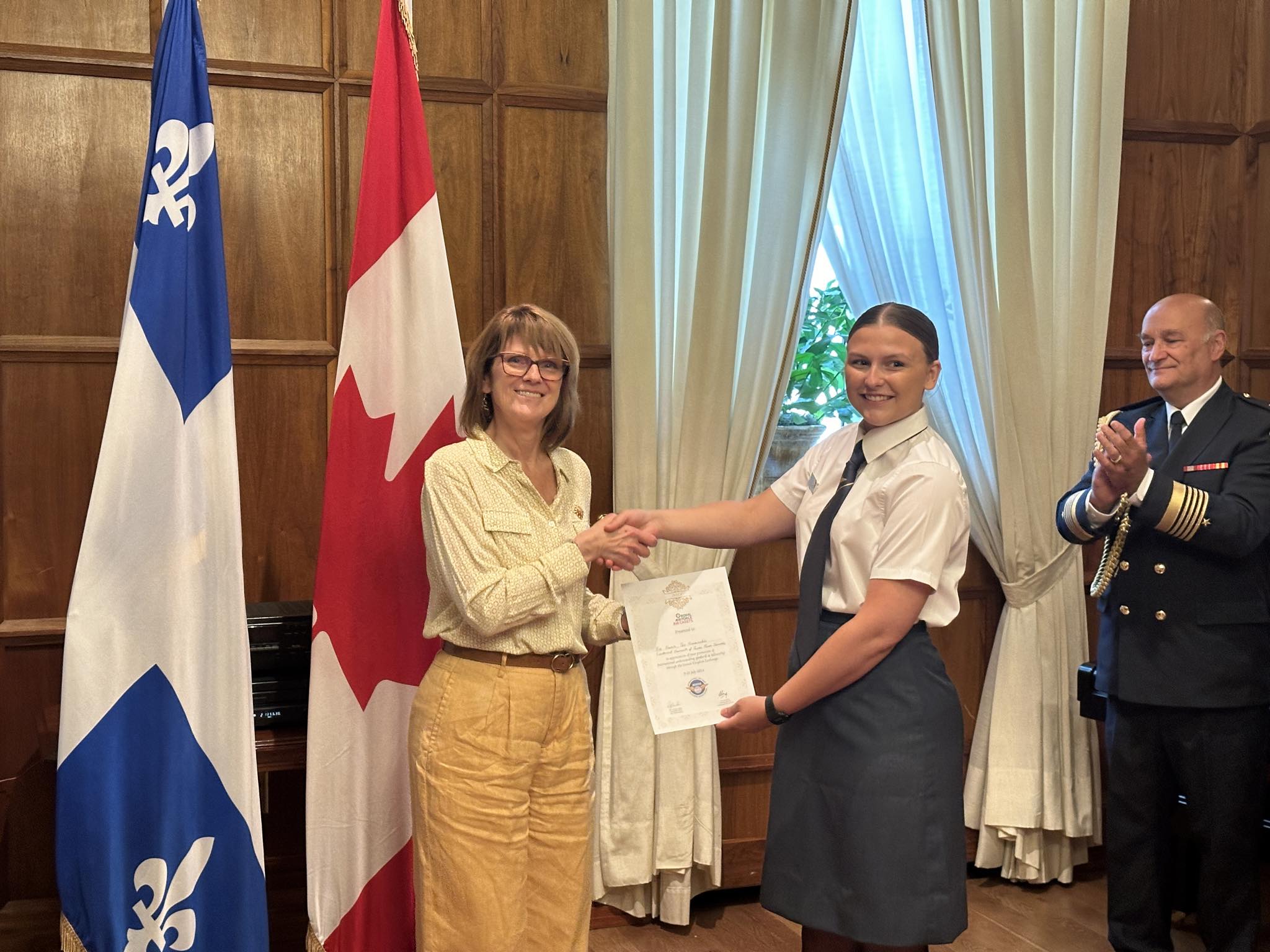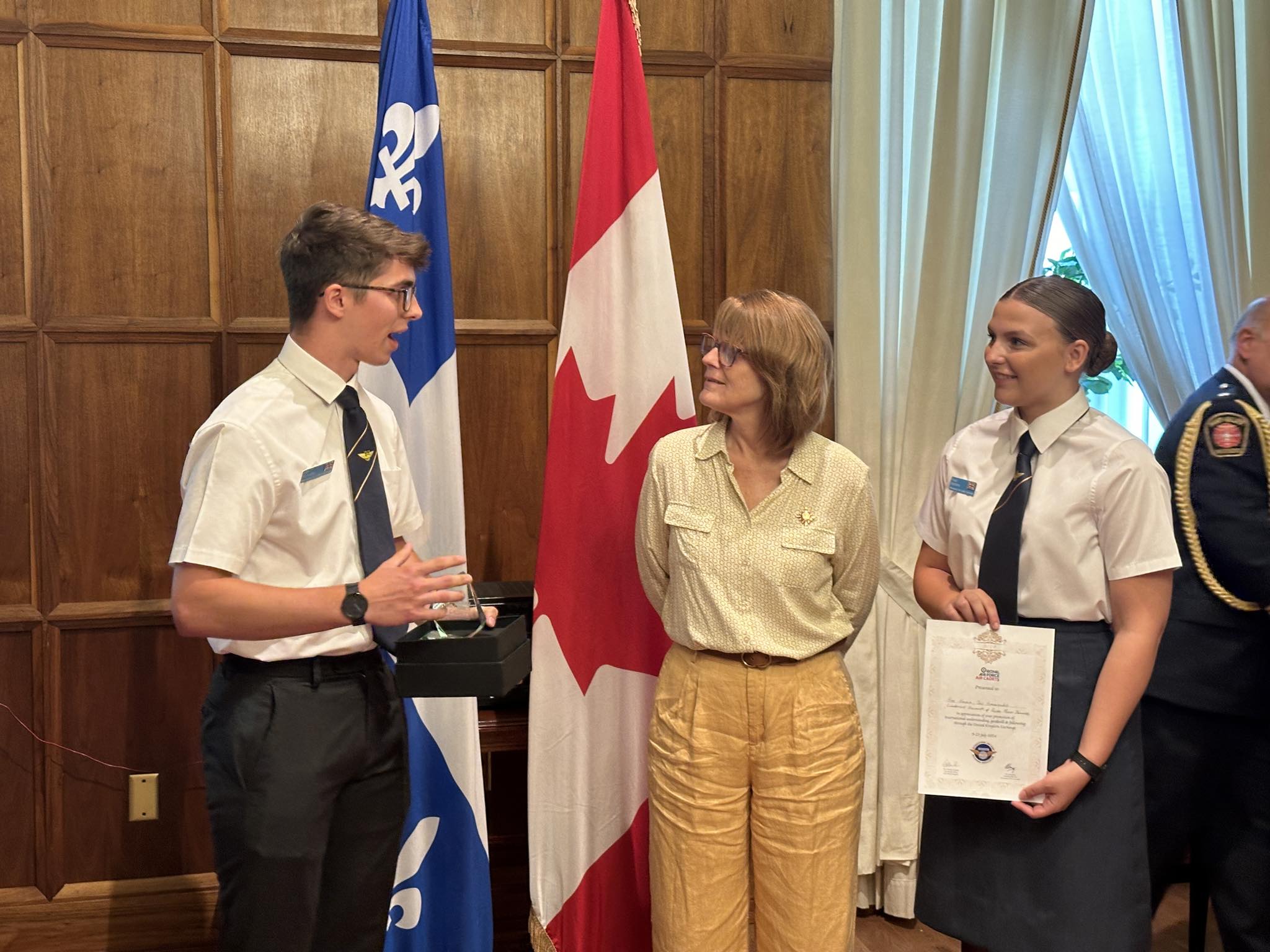 Accompagnés de leurs instructeurs, ils étaient également entourés de M. Michel Côté et de représentants canadiens de la Ligue des cadets de l’air.